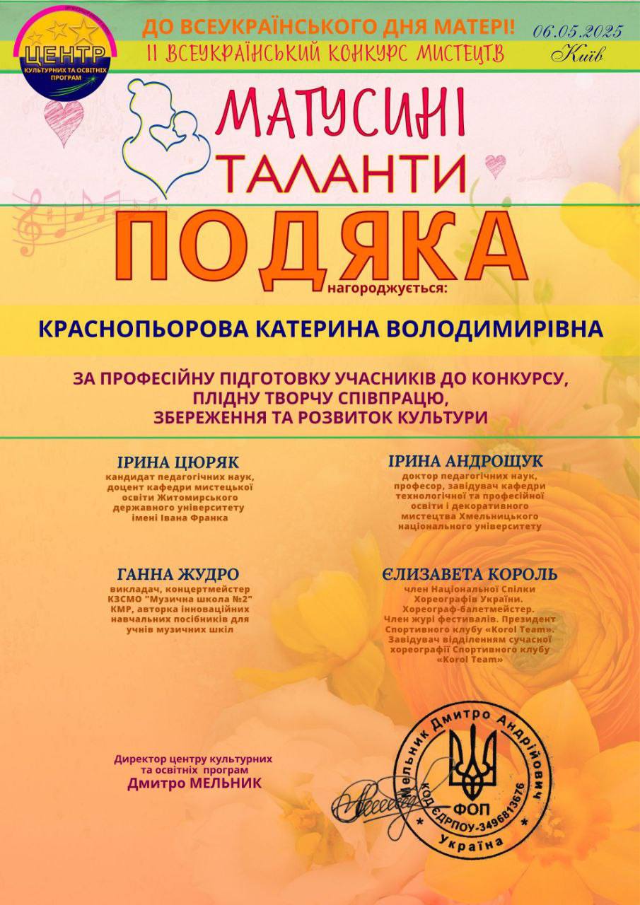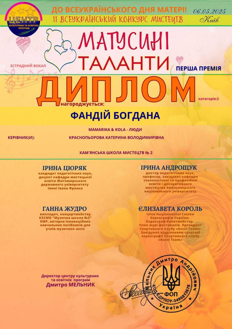 Успіхи юних талантів із Кам’янського на всеукраїнському конкурсі та фестивалі
