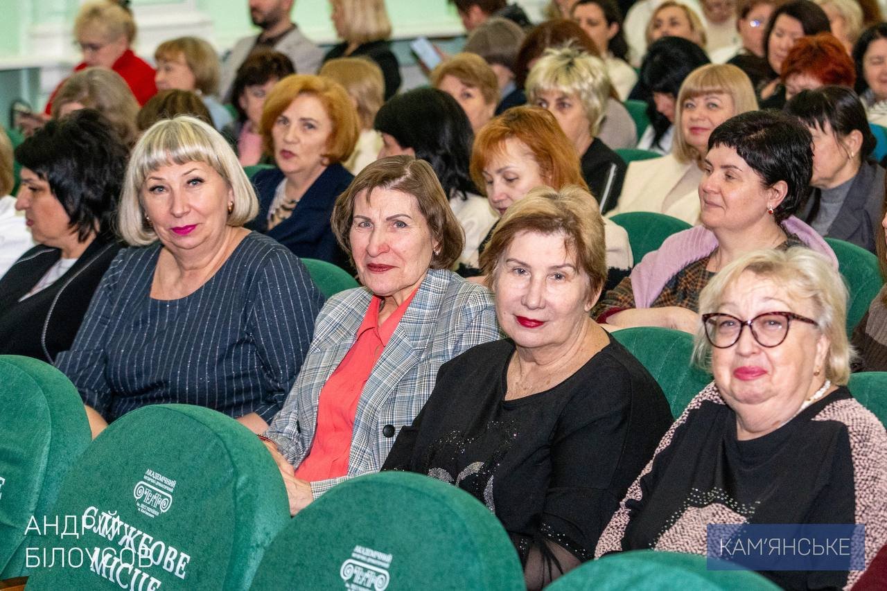 Сьогодні на Малій сцені театру імені Лесі Українки відзначили представниць освітньої галузі Кам’янського з нагоди прийдешнього Міжнародного жіночого дня. Захід "Жінка берегиня" об’єднав керівників закладів, педагогів та технічний персонал – тих, на кому сьогодні тримається навчання та виховання маленьких мешканців нашої громади.