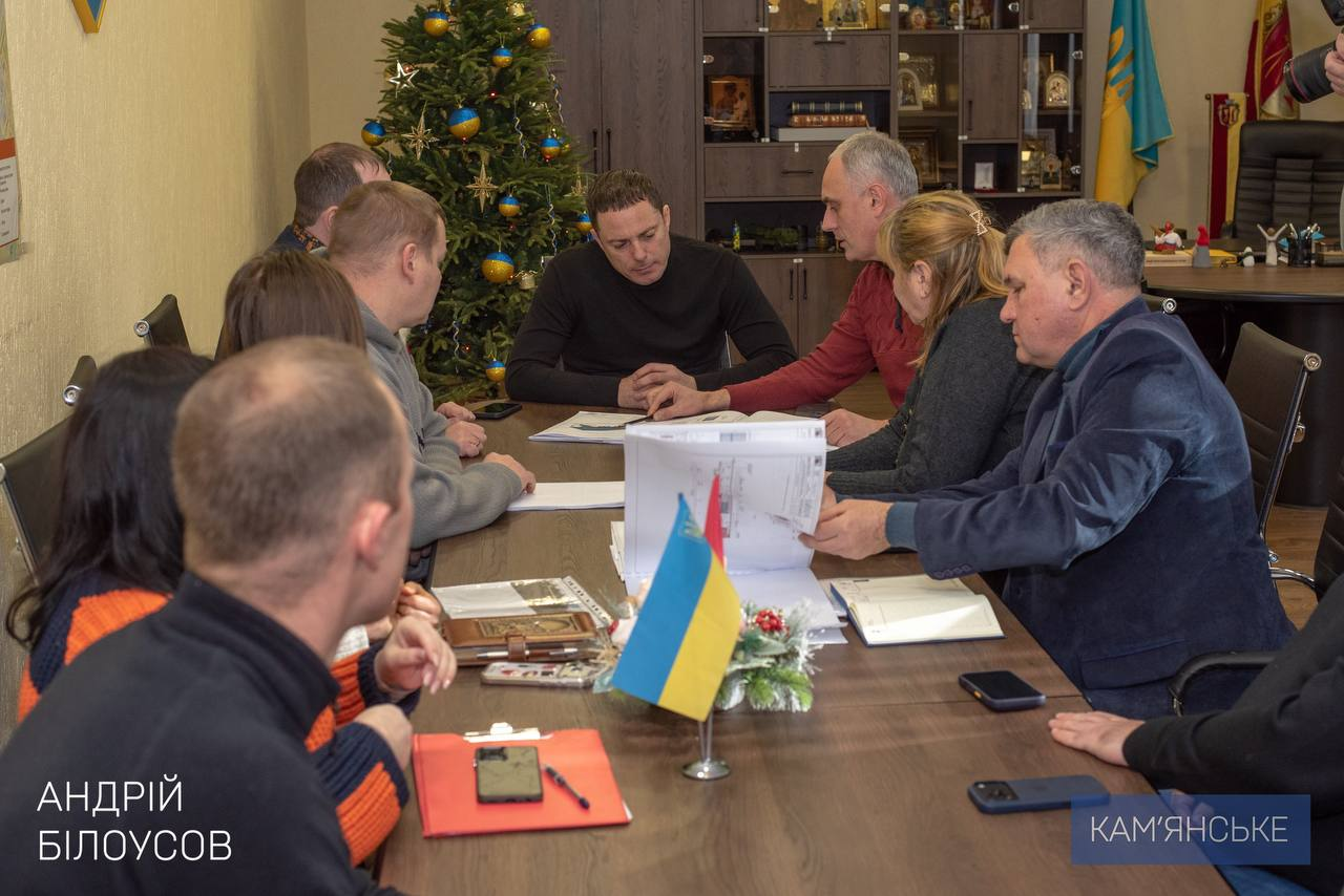 Сьогодні мер Кам'янського Андрій Білоусов провів робочу нараду з керівниками профільних департаментів, управлінь та комунальних підприємств щодо розгляду напрацювань проєкту реконструкції та будівництва сучасних зупинкових комплексів на площі Софії Шаповалової (площа ДМК).